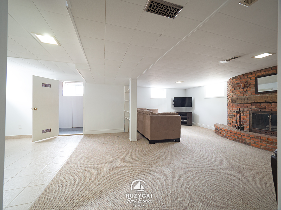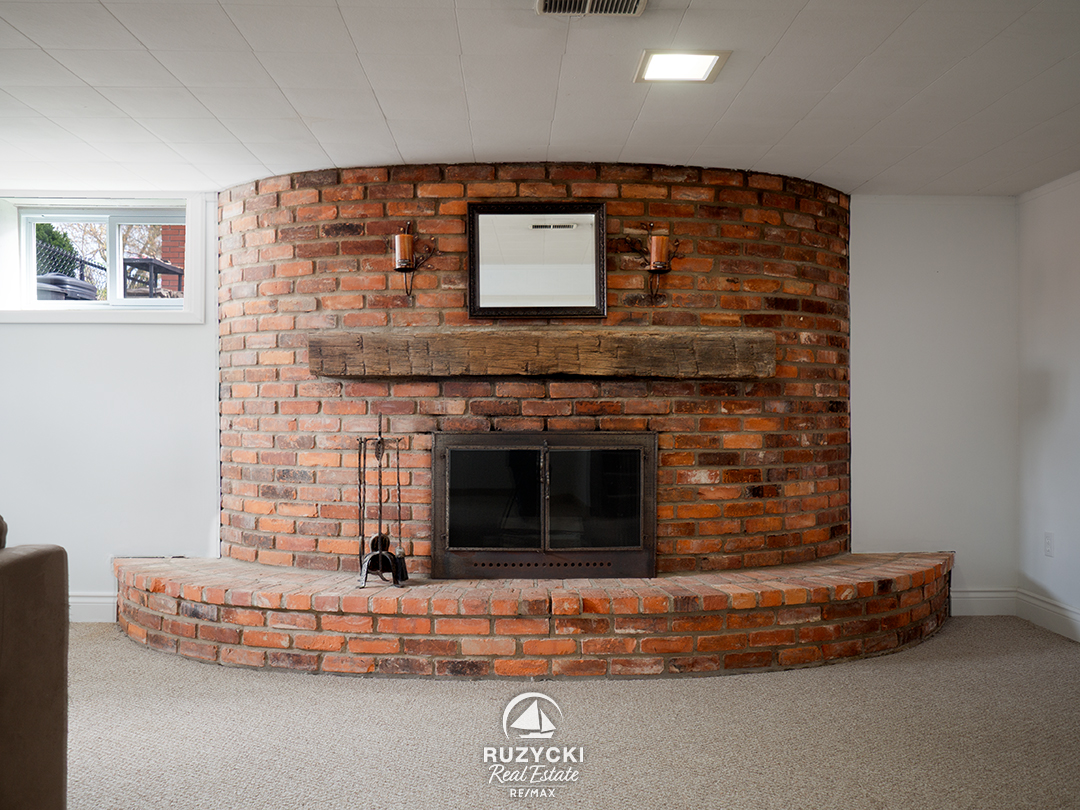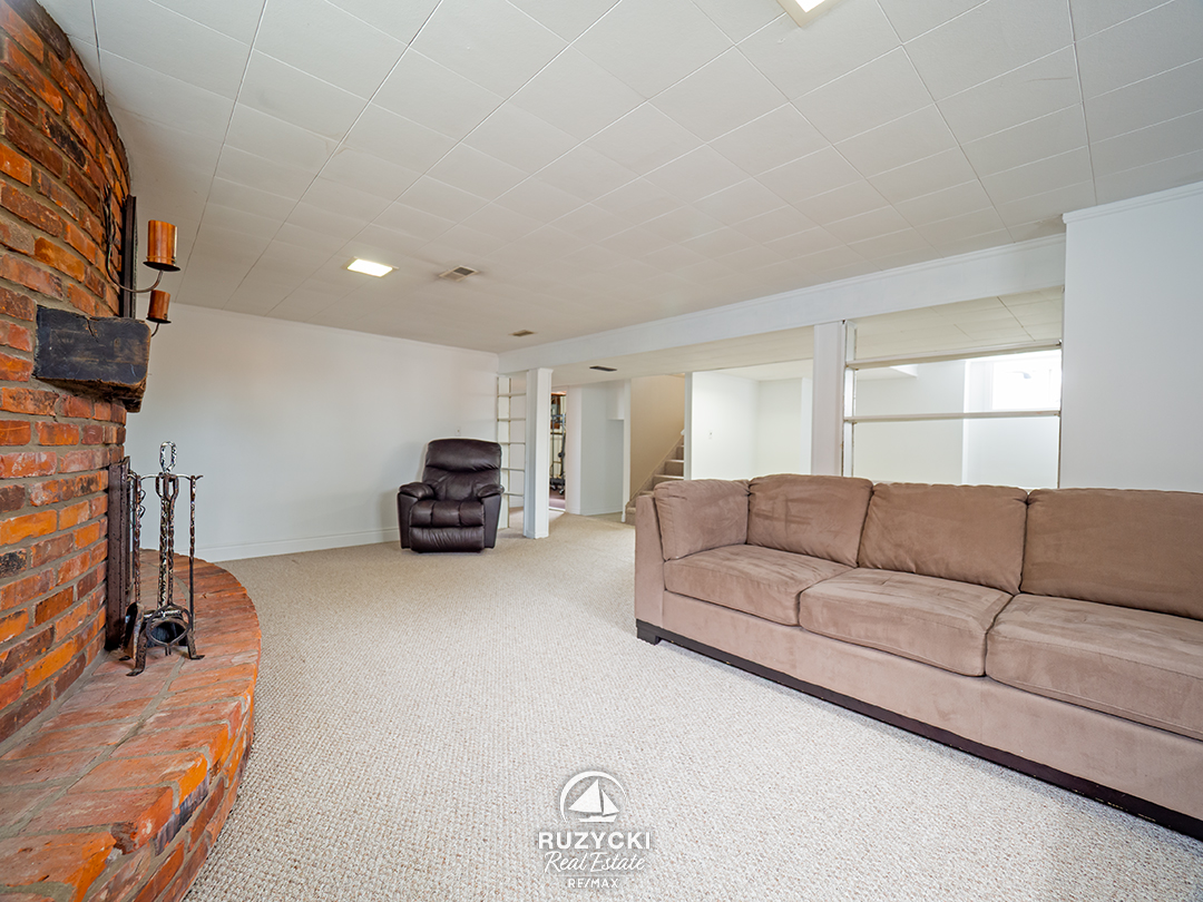 The full basement adds plenty of versatility, with a spacious rec room anchored by a large, wood-burning brick fireplace, a 4th bedroom – perfect for guests, a home office, or growing families – plus a spacious laundry & storage room.