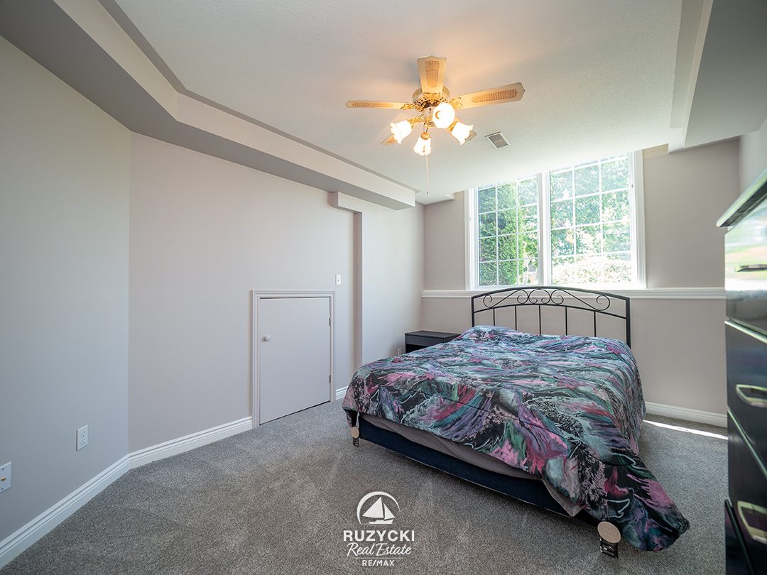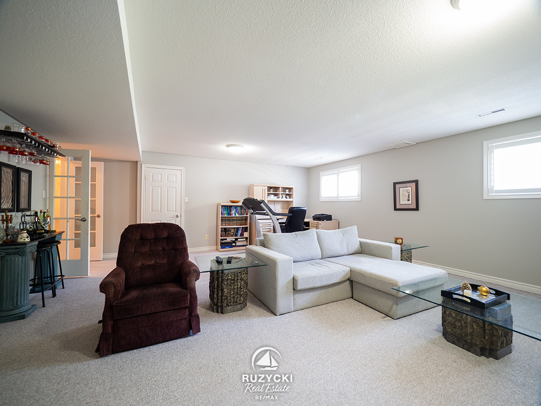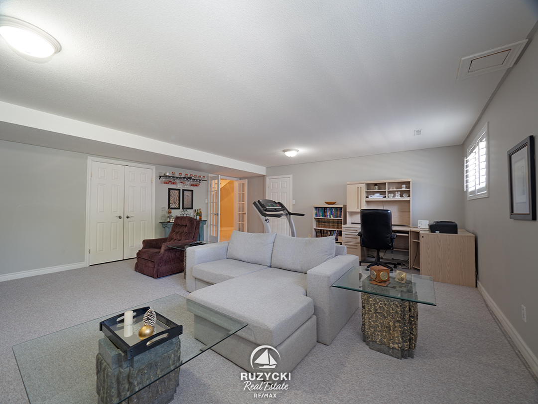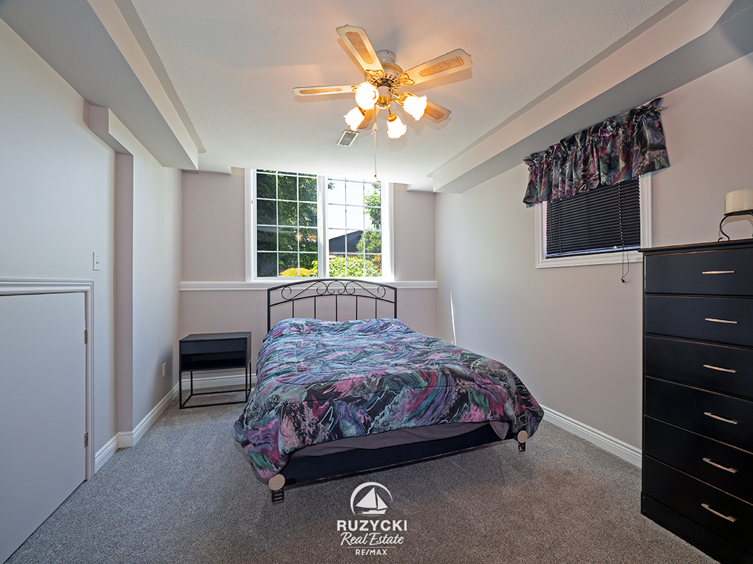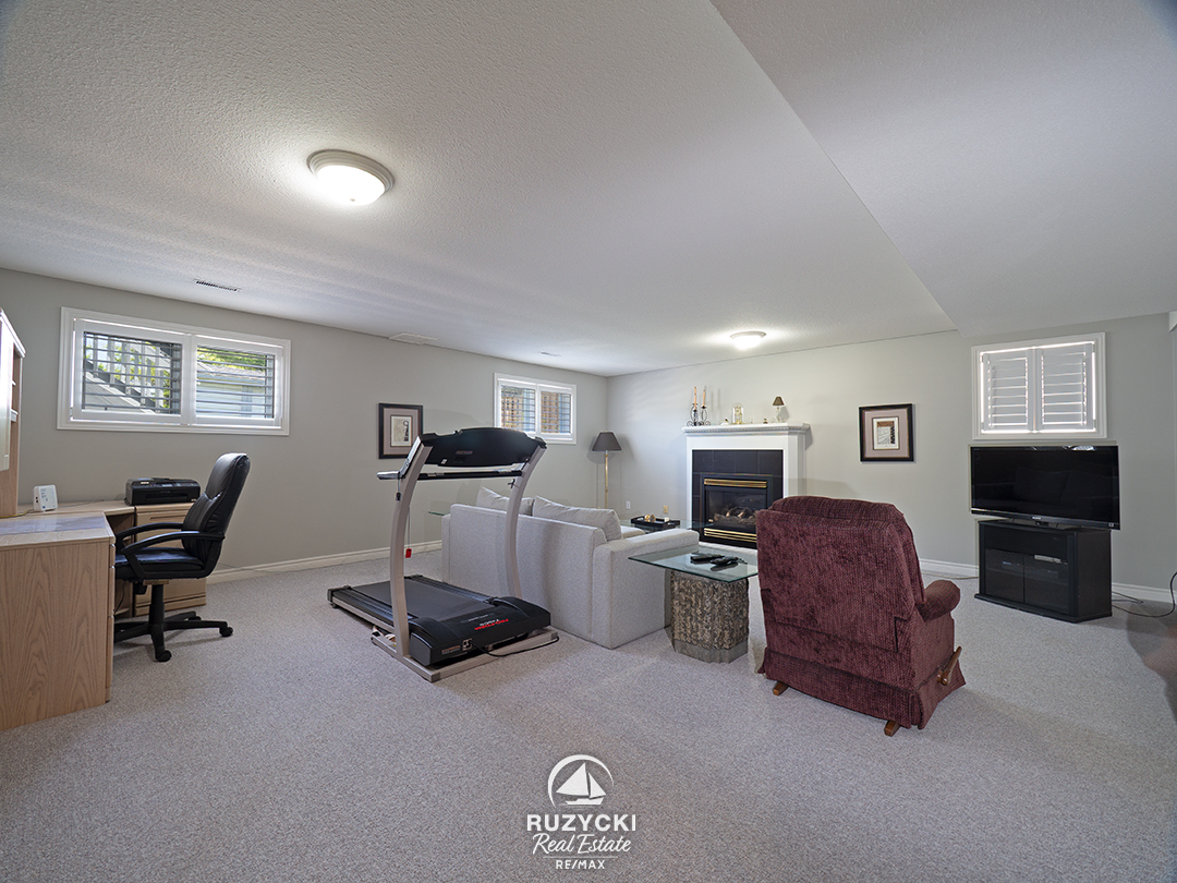 The fully finished lower level offers a large family room with oversized windows and a gas fireplace, a fourth bedroom with a unique shared two-storey window feature, a second full bathroom, and a bonus flex space ideal for a home office, gym, or playroom. A large storage area completes the lower level.