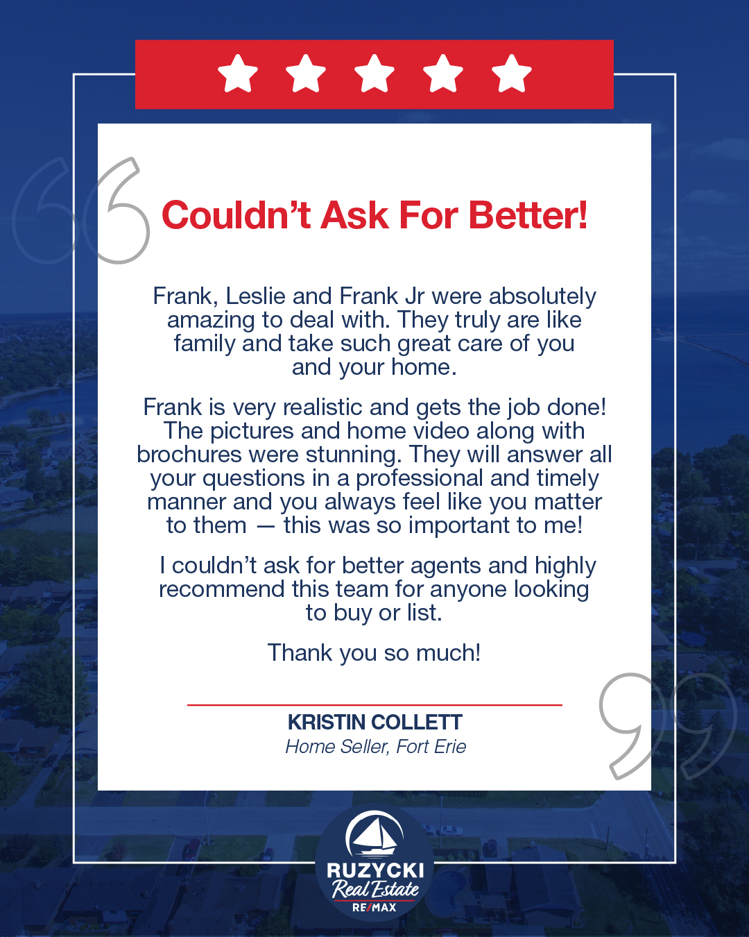From start to finish, it was a real pleasure working with you with the sale of your beautiful home in Fort Erie.